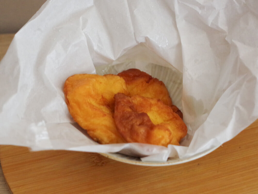 なお、揚げフレンチトーストは紙に油が染み渡るので、ビニール袋に包んで持ち帰るのがベター。気になる方は有料になりますが、その場でも渡してくれます。