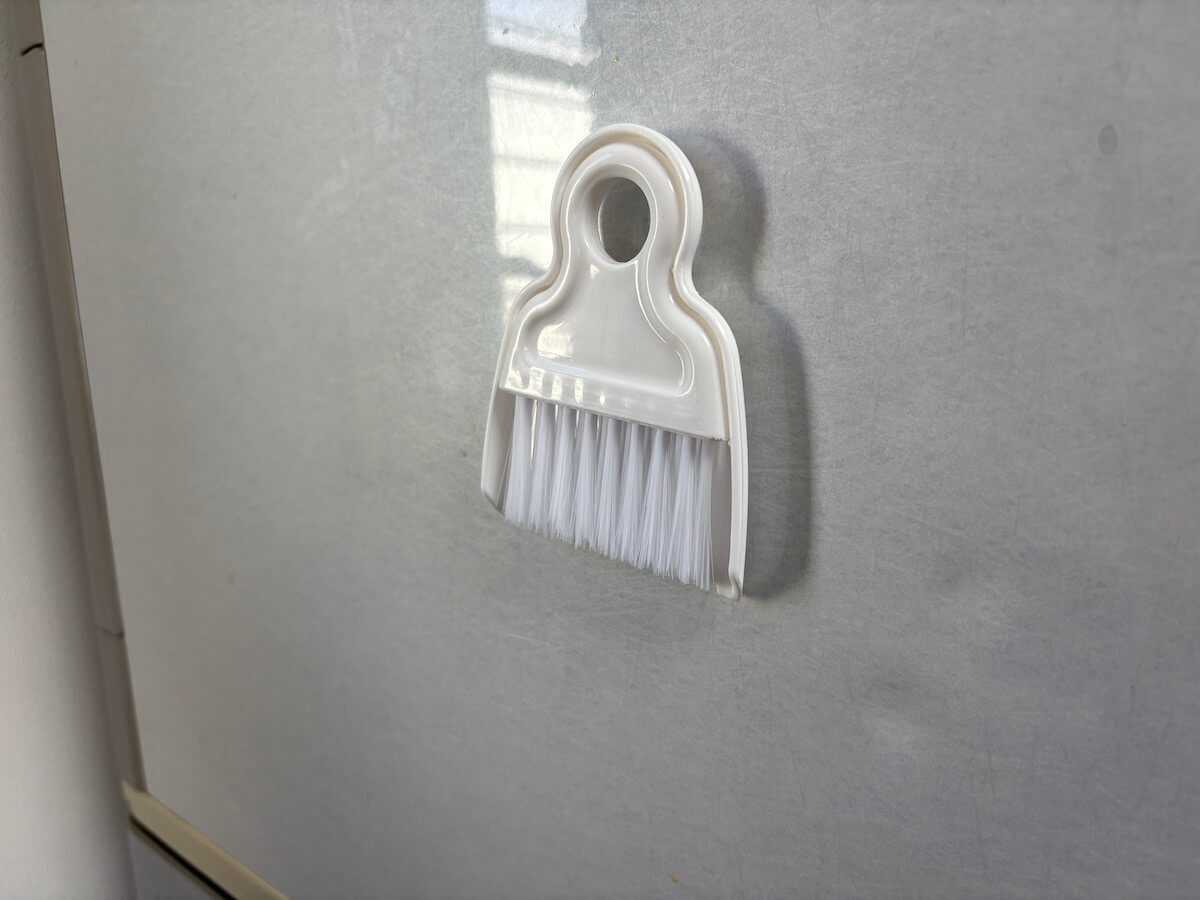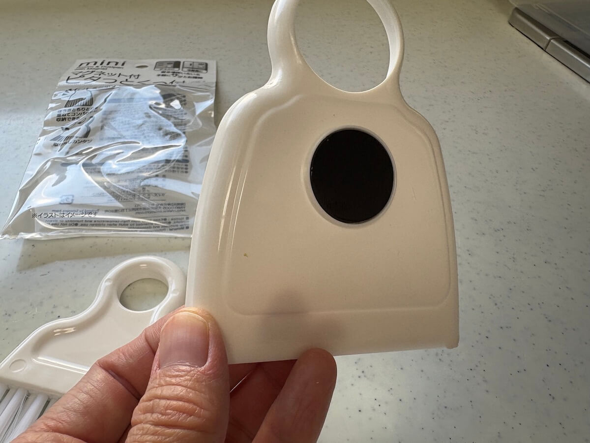 また、チリトリの裏側にマグネットがついているので、冷蔵庫に貼り付けて置くことができます。