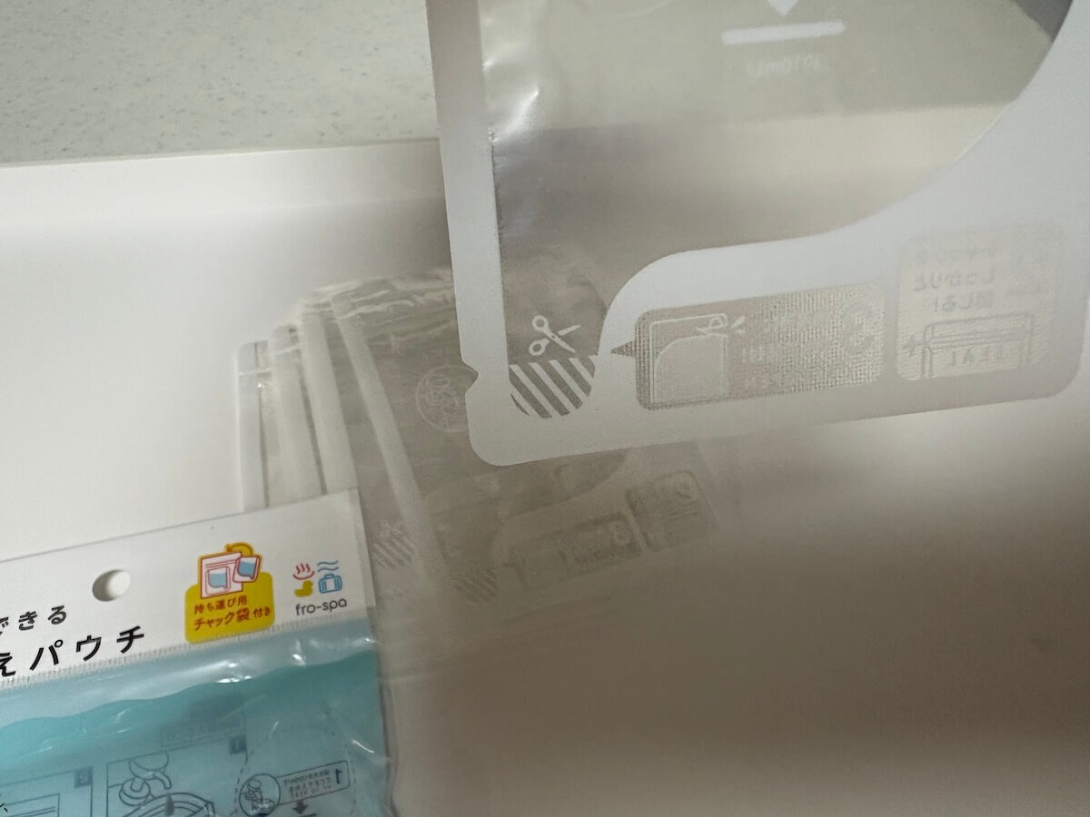 特にシャンプー、コンディショナーは使い慣れたものでないと困るので、このパウチが手放せません。 商品上部のチャック部を開けて詰め替えます。使用するときに、斜め角の切り取り線をカットすれば中身が出てきます。