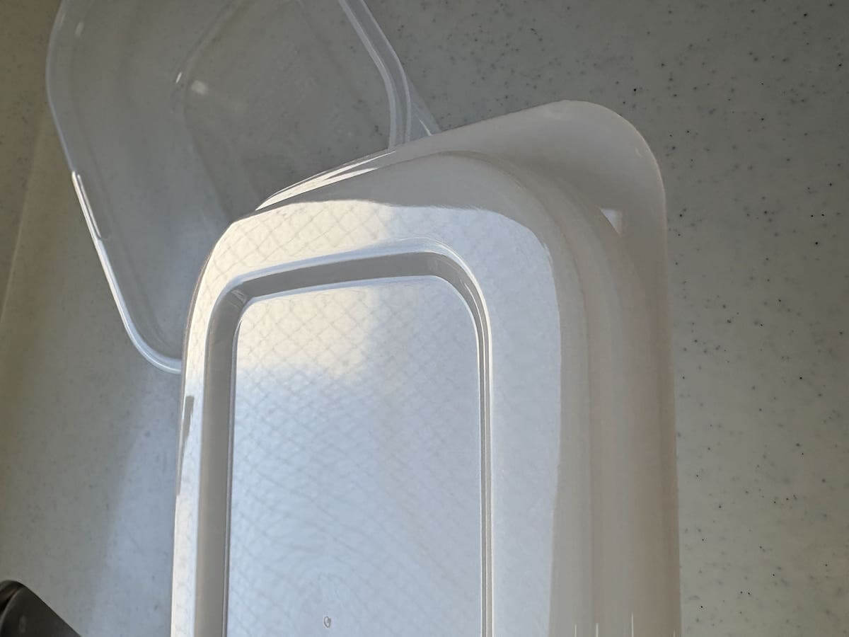 フタと本体のフチがフラットで内側に折り返しがないため、洗いやすく乾きやすいのが特徴です。洗ったあとに水滴を拭き取りやすく、すぐ収納できます。