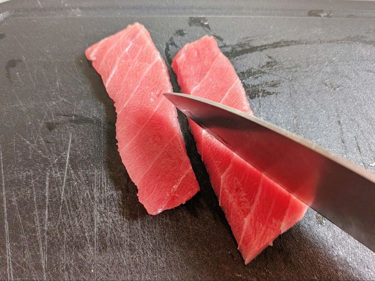 【漬けマグロ】手順①隠し包丁を入れる