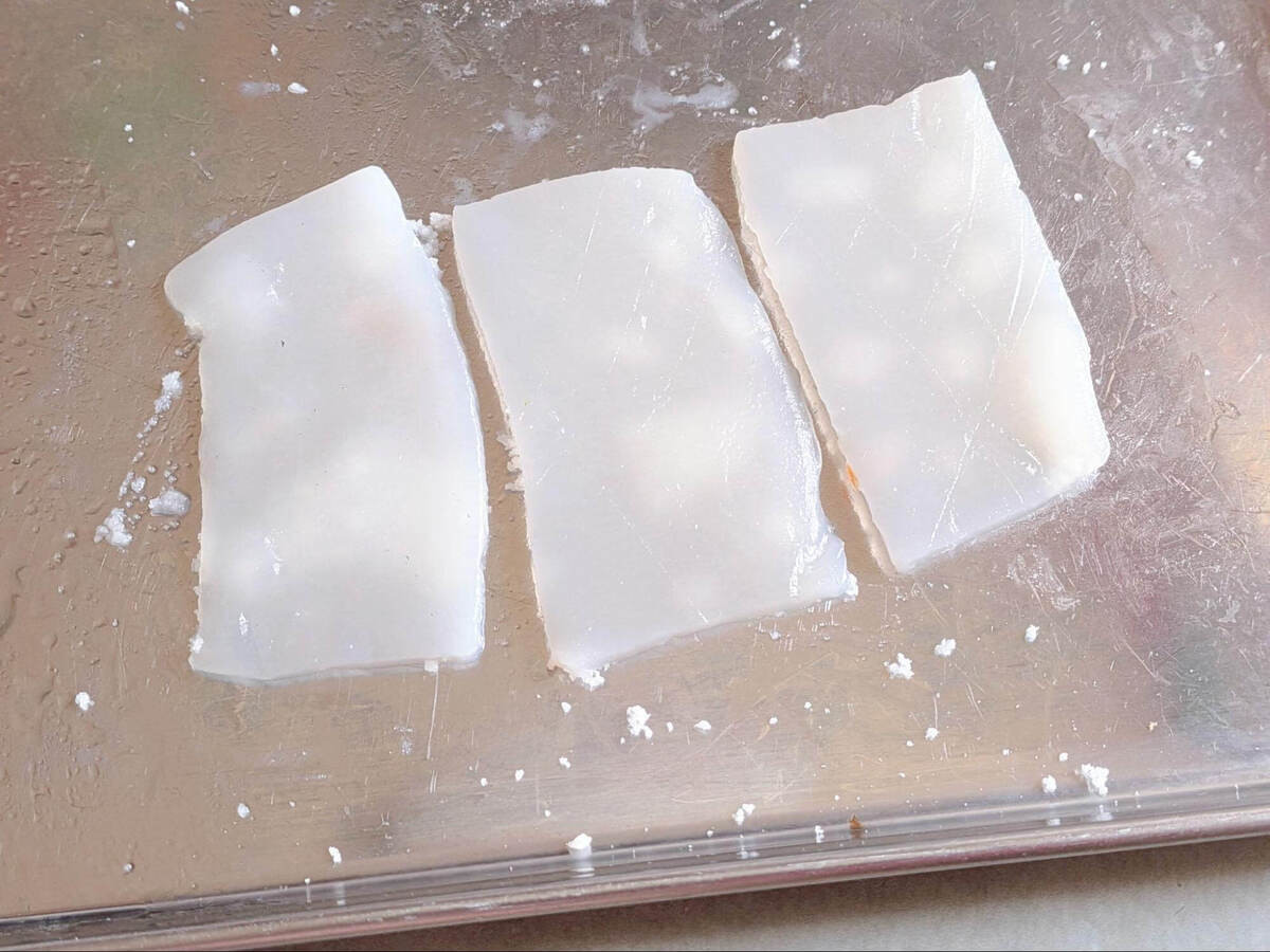 バット全体に塩を薄く振り、イカをのせて2分おきます。