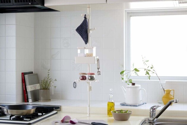 自由に組み合わせることで、自宅にあった収納をつくることができ、キッチンや玄関など、小物が散らかりがちな空間もスッキリと整います。一本のつっぱり棒で、狭い場所にも置ける省スペースな収納が完成しますよ。