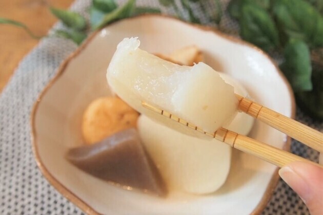 たった10分煮込んだだけなのに、中までお出汁の味がしっかりしみ込んでいます。ちょうどよいやわらかさなのに煮崩れもしていなく、驚きました!