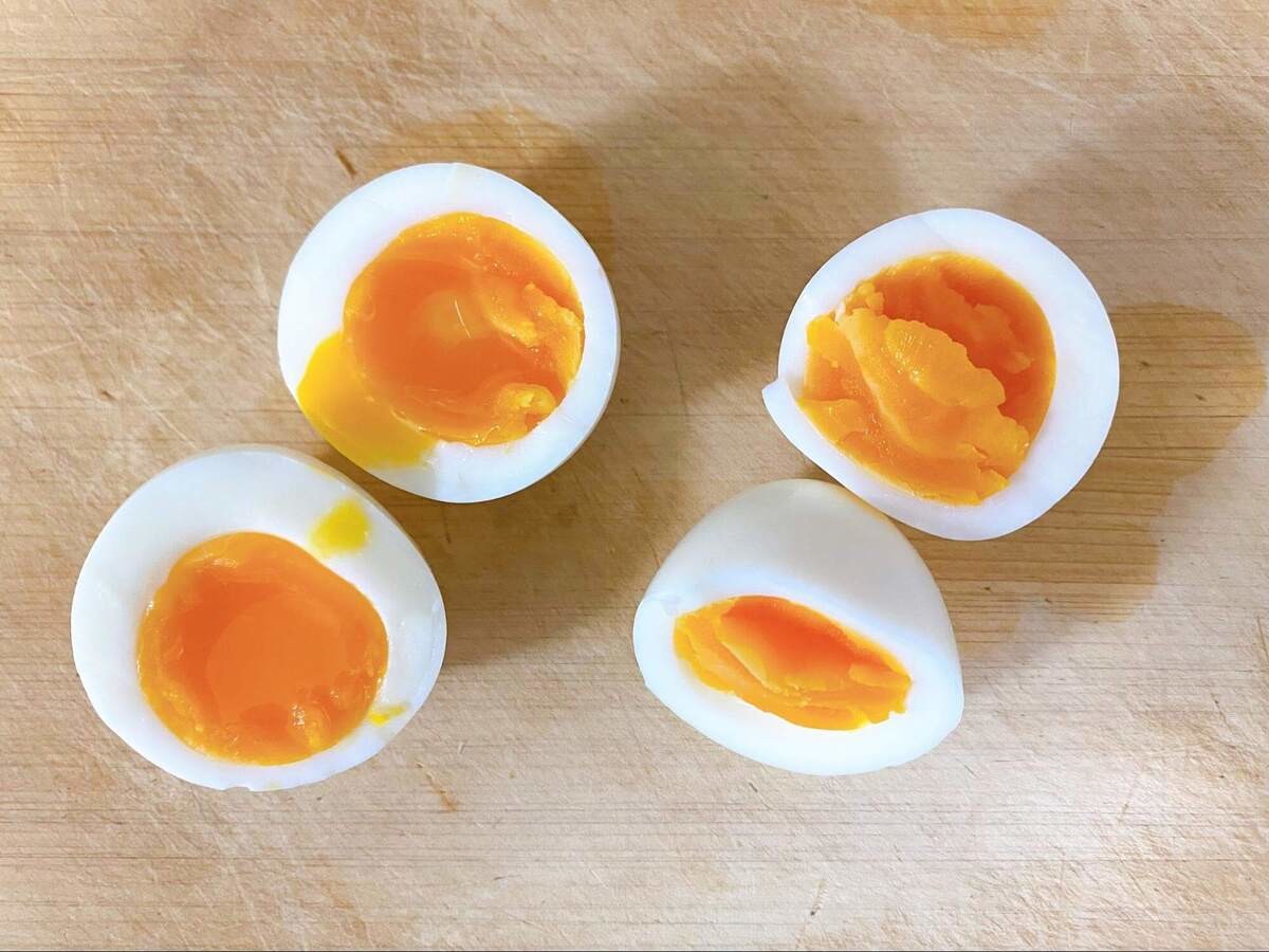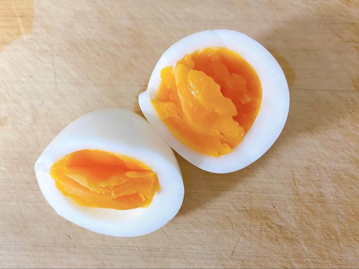 5分の卵は、黄身がねっとりとしてかたすぎず、ゆで卵として理想的な仕上がり!