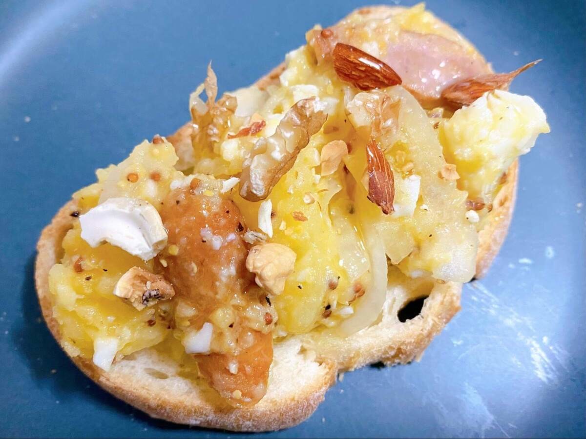 公式のおすすめに沿ってバゲットにのせてみると、チーズや卵が強めに感じられてお惣菜パンみたい!