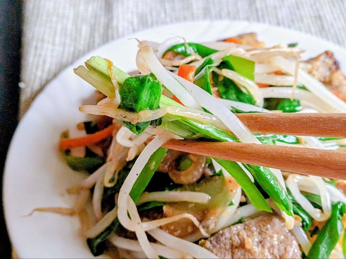 最後のもやしとニラを炒める工程で少しモタモタしてしまいましたが、それでも野菜はシャキッと食感を保っています。
