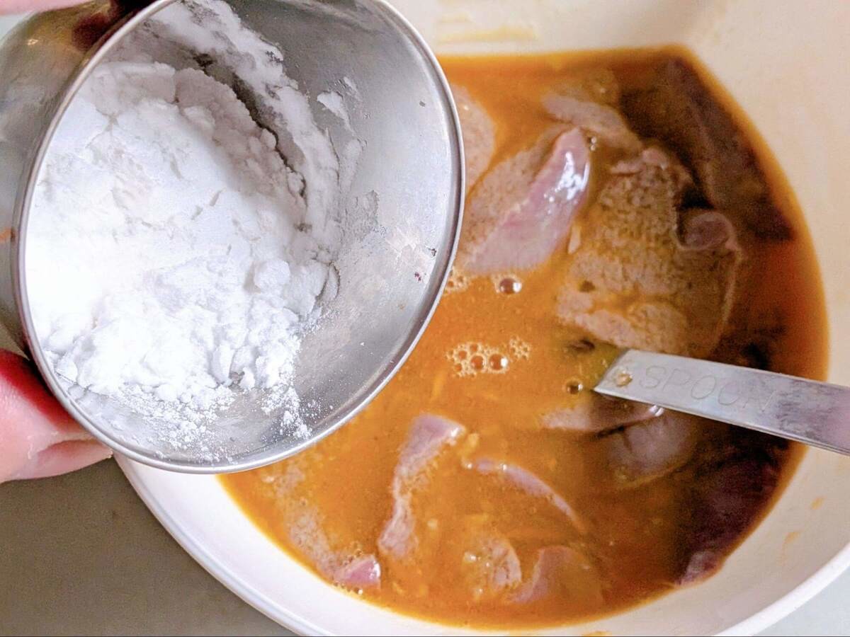 ここからは、下ごしらえしたレバーを一度揚げてから野菜と炒める工程です。