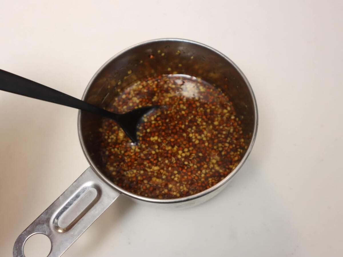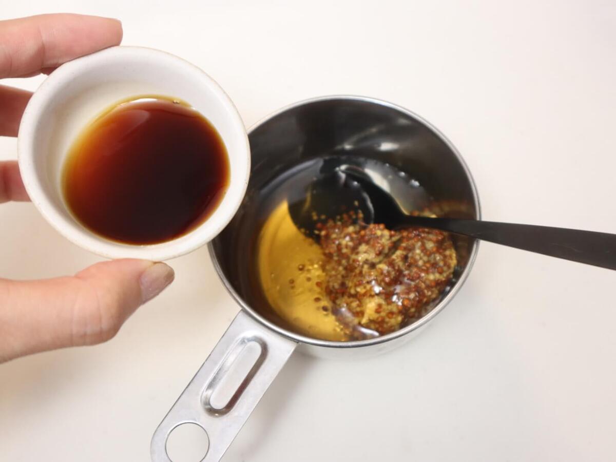 粒マスタードがたっぷり、そして蜂蜜も混ぜているのでとろっと濃厚なタレ。