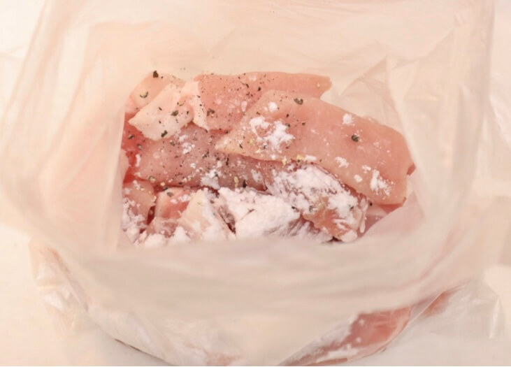 塩・胡椒・片栗粉を入れ、ポリ袋を振って全体を均一になじませましょう!