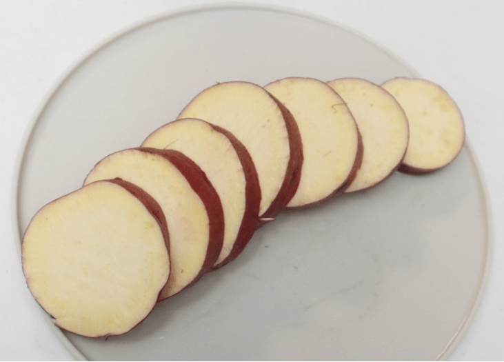筆者は大きなさつまいもを使いましたが、りこさんはInstagramで細長いさつまいもを輪切りにしていたので、お好みで食べやすい大きさにカットしてくださいね。