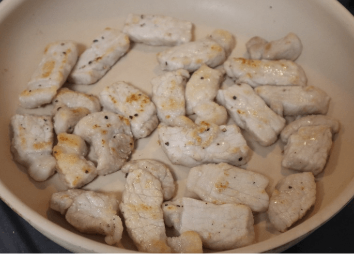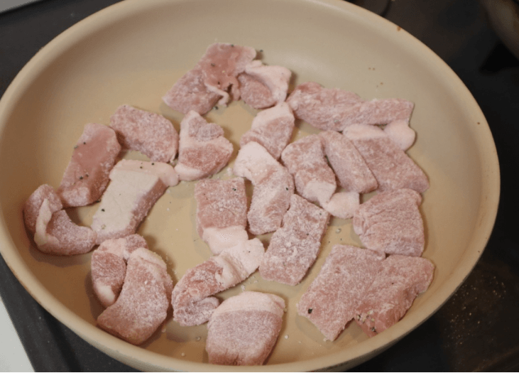 筆者は油なしで焼いてみたのですが、だんだん豚肉から脂が出てきたので問題なく焼けました。