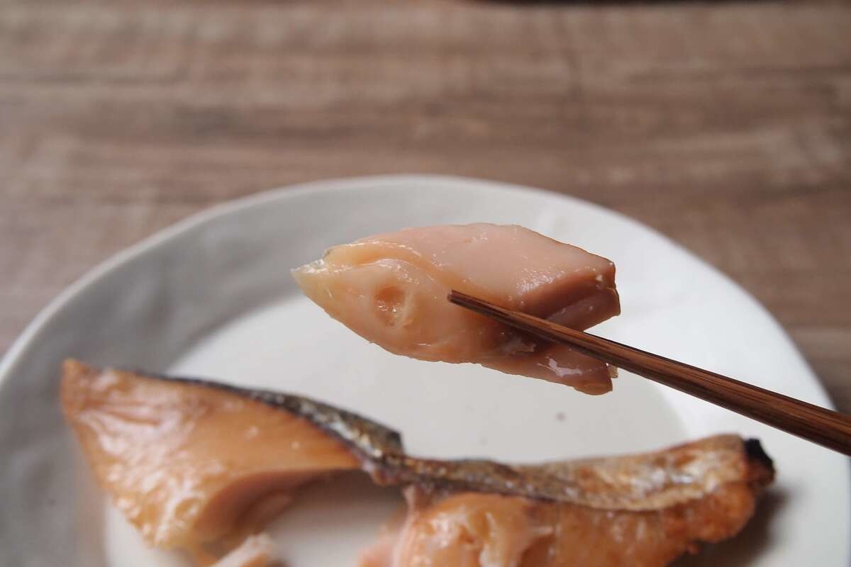 まずグリルで焼いた鮭は、箸を入れると皮目がパリッとし、身も弾力がある仕上がりです。