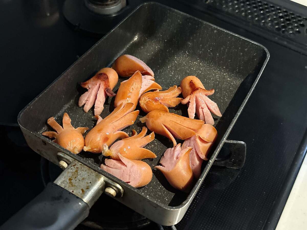 いわゆる“皮パキ”系のウインナーではないけれど、ソフト系のウインナーも全然あり。油を少量しいてフライパンで焼くと、カリッと香ばしくなってより美味しいですよ♪