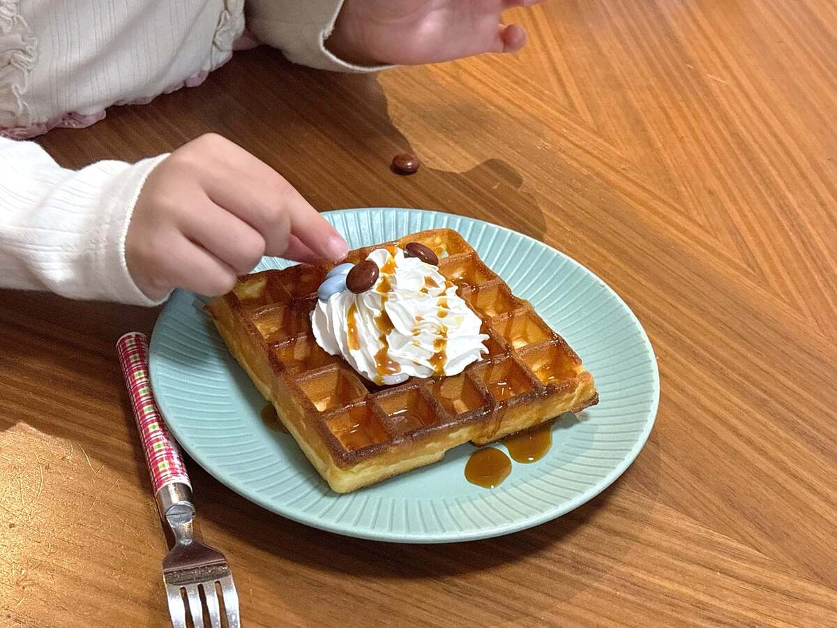 味の感想はきっと、想像通り。外サクサク、中ふわふわのワッフルは、バターの風味たっぷりで贅沢な味わいです。