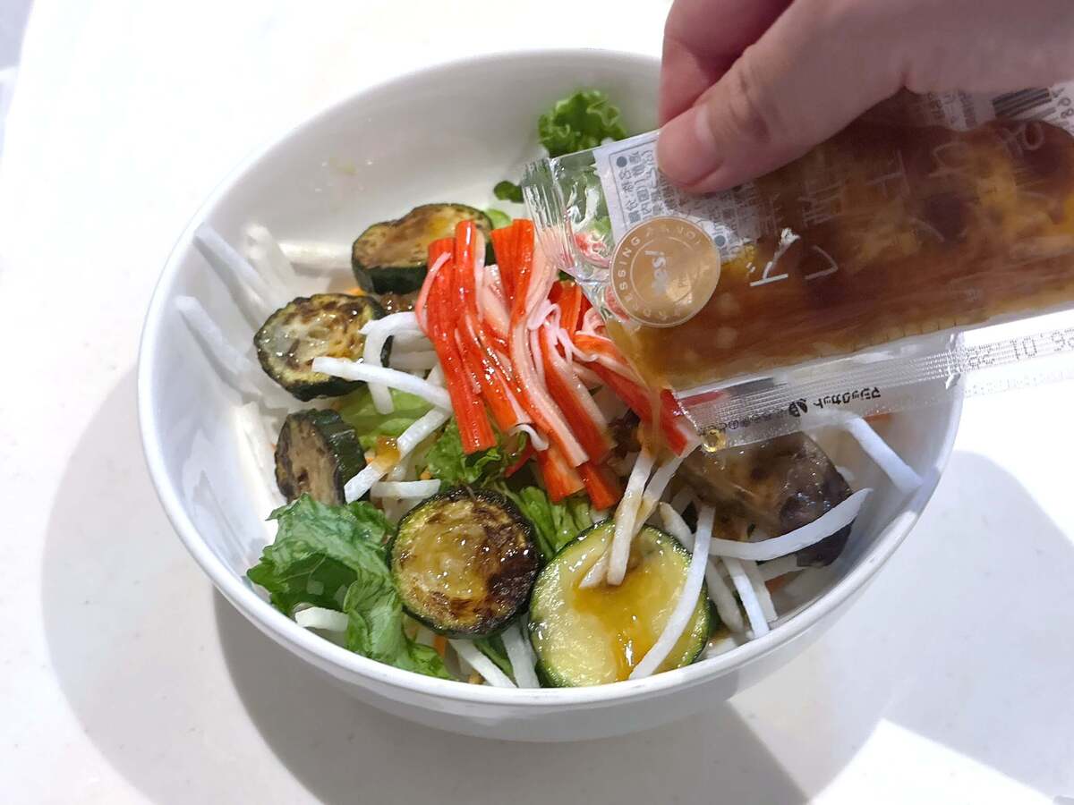 さっぱりとした酸味に、玉ねぎの甘さが生きた味わいがたまらないんです……!ふだんはごまドレで食べることが多いので、さっぱりとしたドレッシングが染みました。