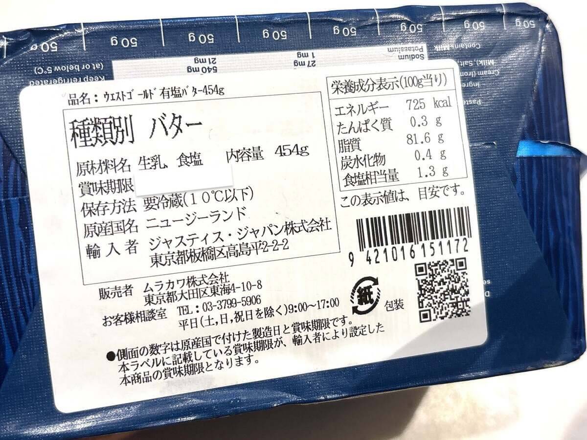 - 商品名:ウエストゴールド 有塩バター