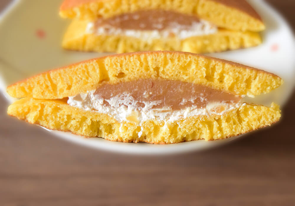 どら焼き自体は小ぶりですが、クリームはたっぷりと詰まっていて結構高さが出ているのは好印象。