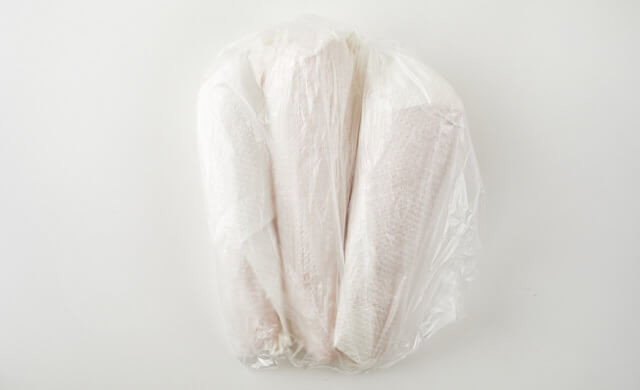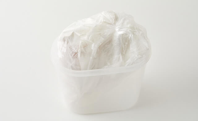 ②キッチンペーパーで包み、ポリ袋に入れる