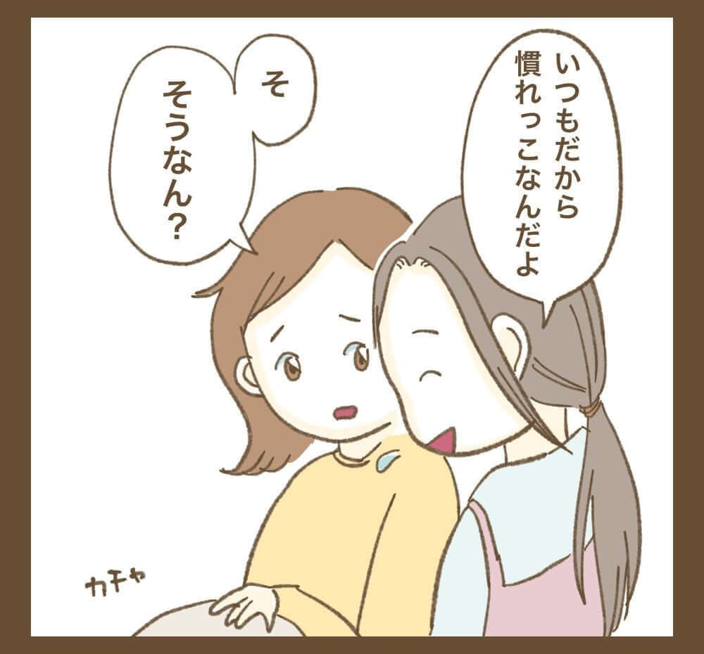 育児支援プログラムで、おしゃれなママ・アイちゃんと知り合ったねぼすけさん。同じ月齢の子を持つママ同士、自然と仲良くなり、頻繁に一緒に遊ぶように。