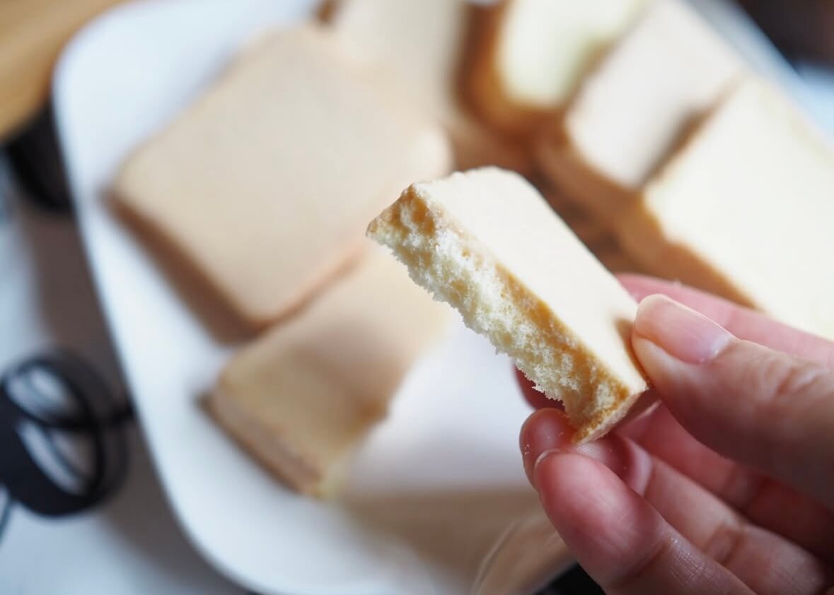 サクサク食感のラスクにキャラメルクリームがコーティングされていて、シンプルながら食べごたえのあるおやつですよ。