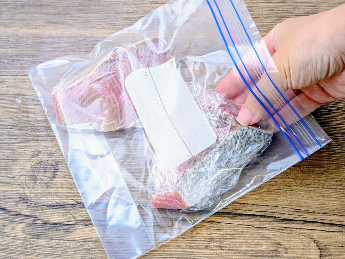 水分を拭き取ったら、1切れずつ空気に触れないよう丁寧にラップで包みます。酸化と乾燥を防ぐため、さらにチャック付き保存袋に入れましょう。
