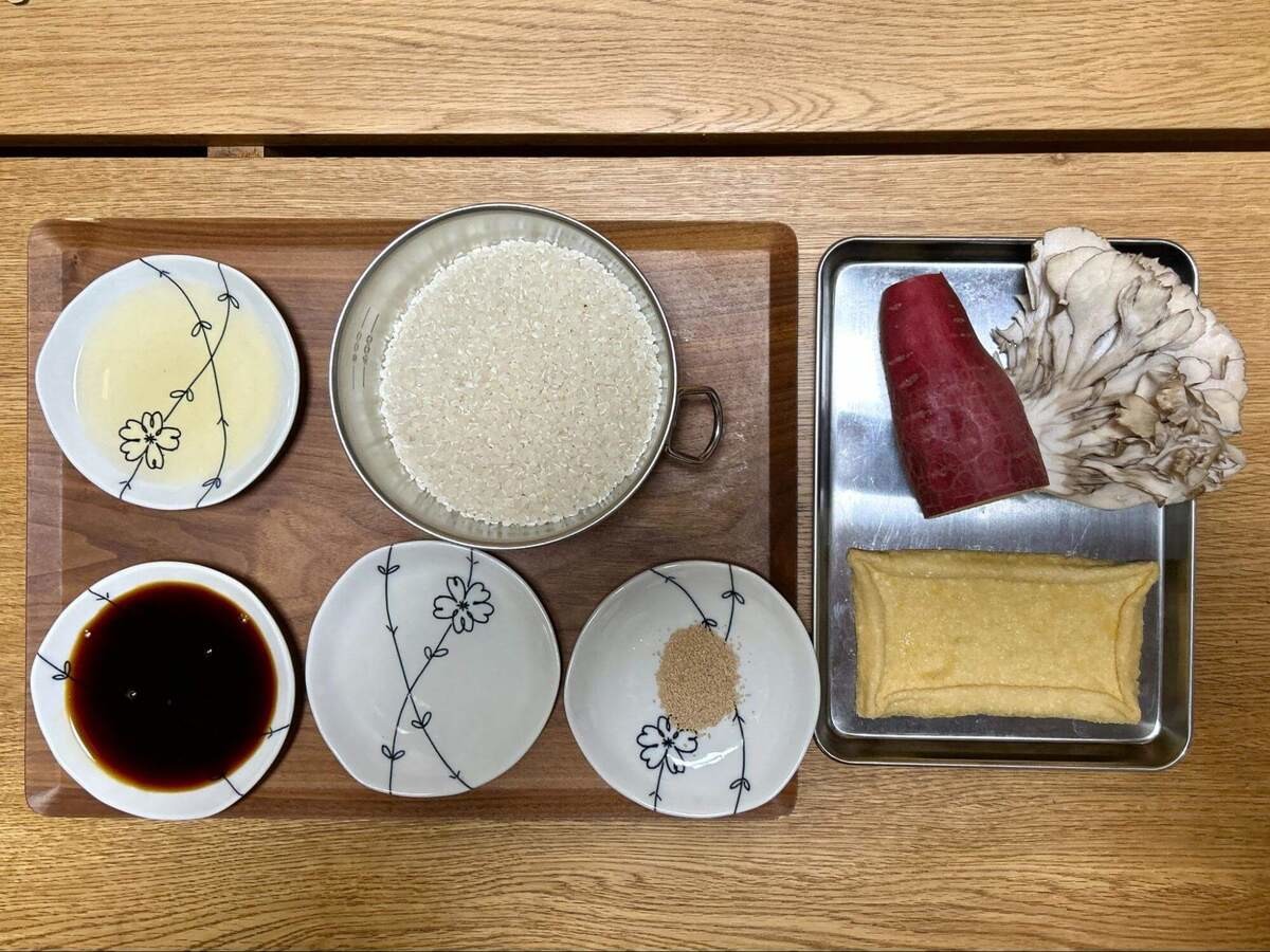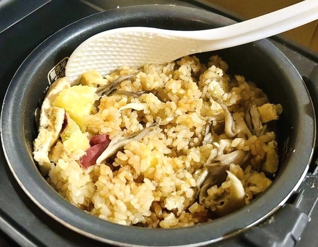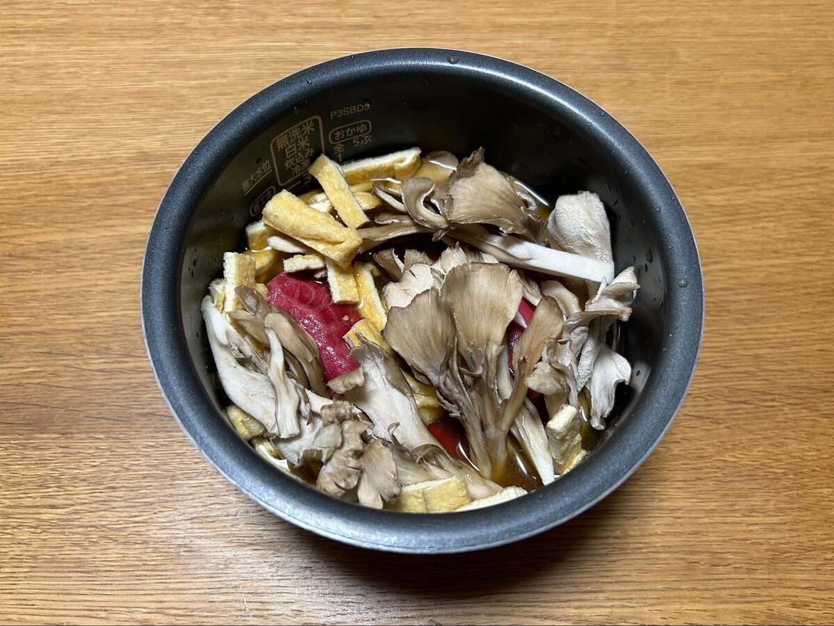 さらに、さつまいも、舞茸、油揚げを加えたら、普通炊きで炊飯スタート!