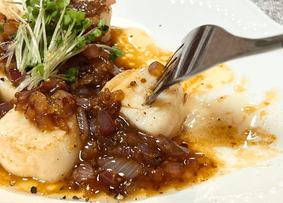 さらに、ホタテの甘みを引き立たせるために表面だけを焼くテクニックも、自己流ではなかなか思いつかないポイントです。