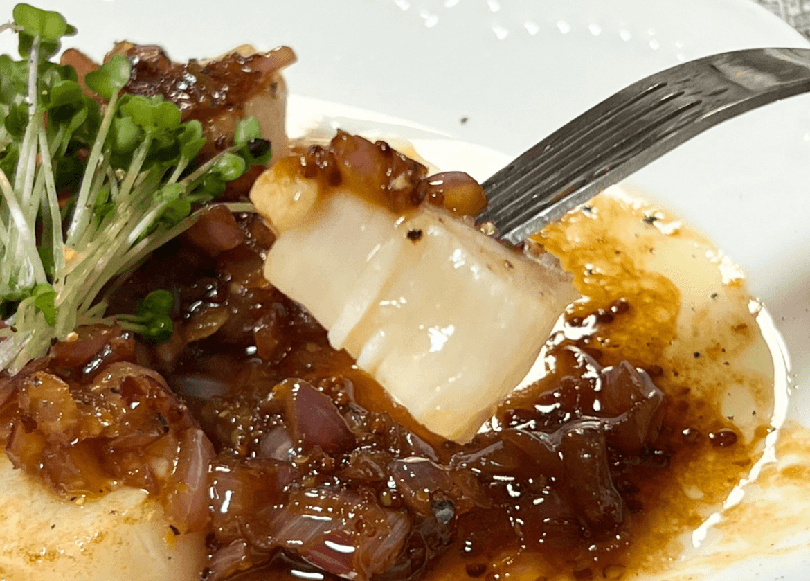 ホタテってこんなに甘かったっけ?と感じるほど、ソースとのコントラストがはっきりと出ていました。