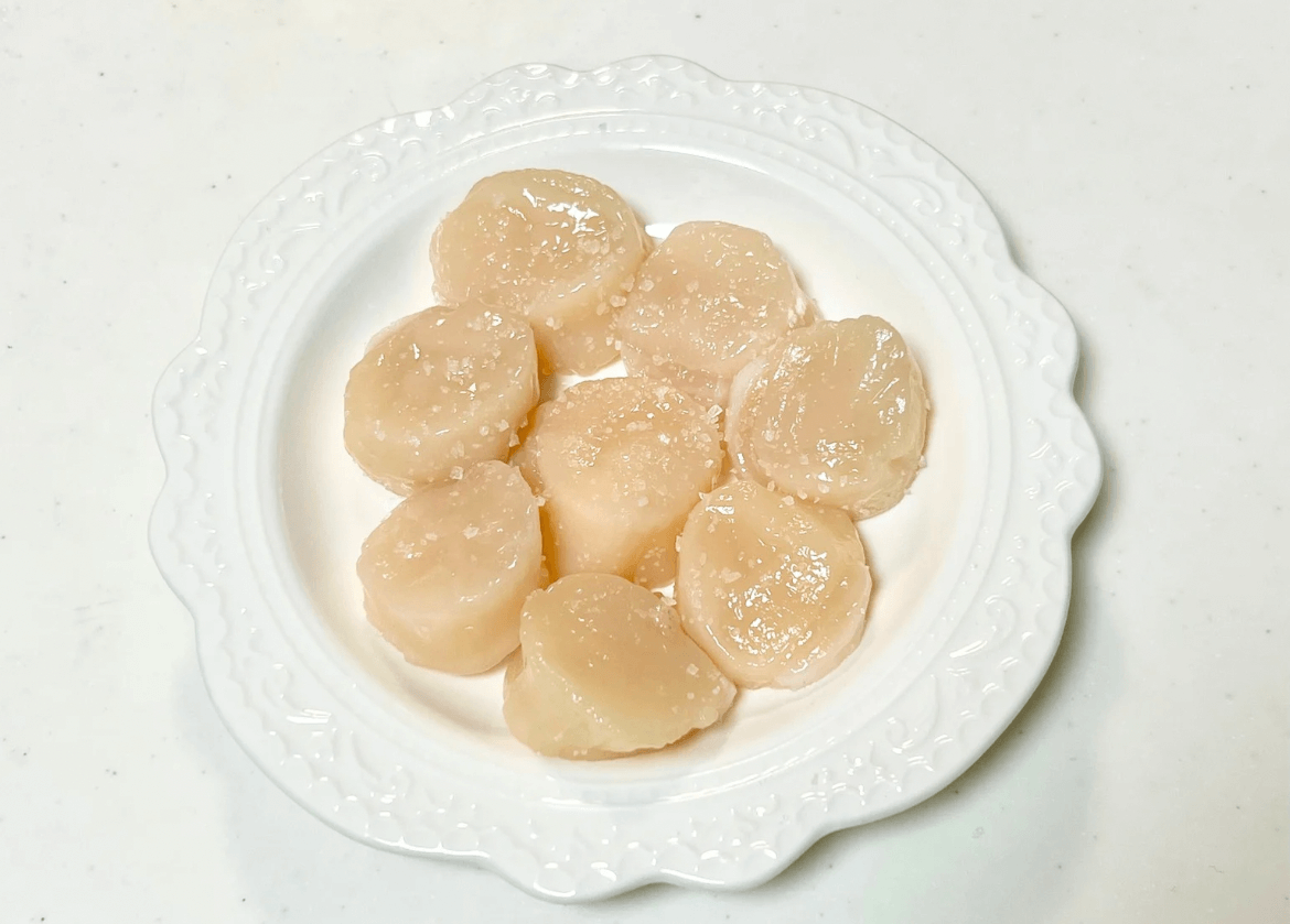 塩をふって水分を抜くことで、ホタテの旨みがギュッと濃縮されますよ♪