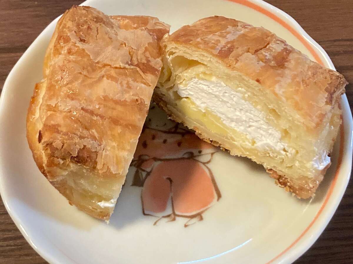 次にクリームですが、クリームパンに使われるカスタード系ではなくホイップシューのようなふわふわクリームを採用。程よい甘さなので、飽きずに食べきれました。