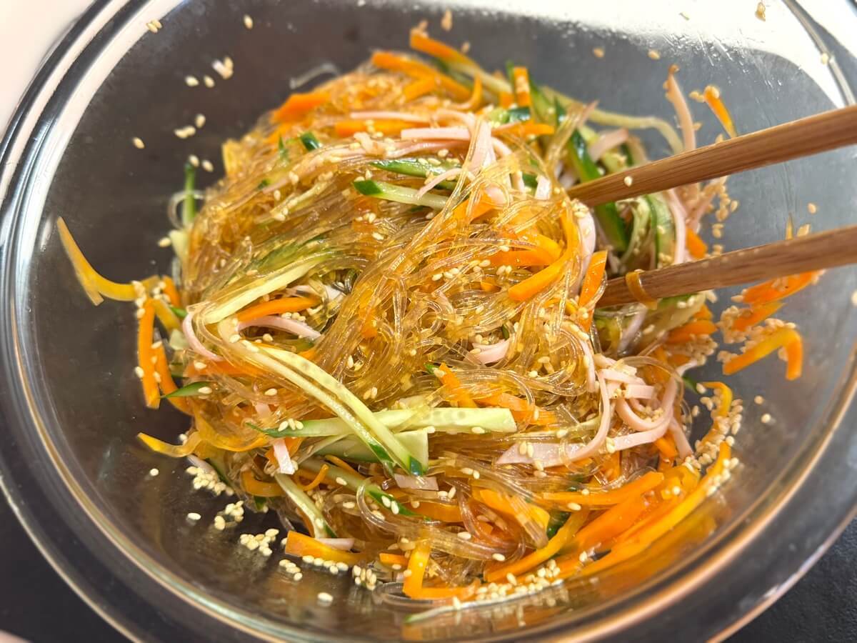 【春雨はお湯で戻さないで…!?】“あの液体”にドボ〜ンが大大大正解!家族全員「おいしい!」「しみっしみ」レンジ完結“春雨サラダ”レシピ