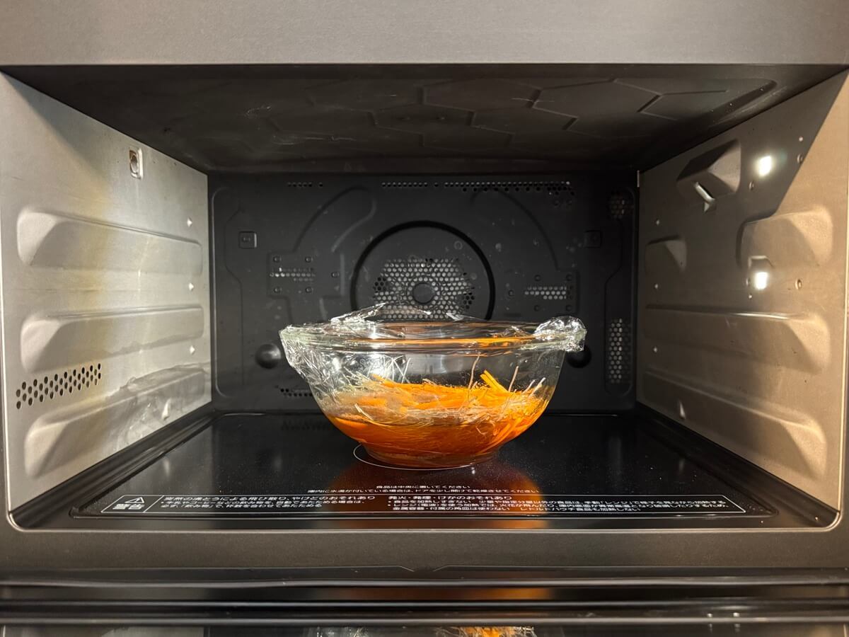 緑豆春雨と一緒に電子レンジ加熱したにんじんにもしっかり火が入っていましたよ。