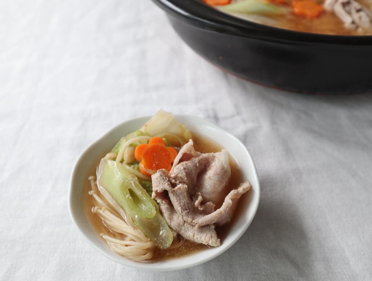 海老の味をしっかり感じられるつゆなので、あえて具材には海鮮を入れないのがポイントです。白菜などの野菜もしっかり海老の旨みを吸って、びっくりするほど美味しくなりますよ。