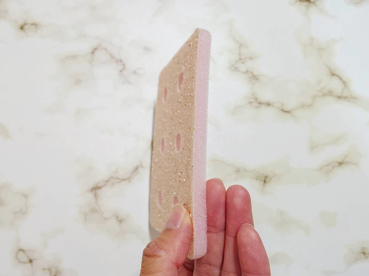 研磨面がとてもザラザラしていて手の皮ももっていきそうなパワーなので、ゴム手袋着用をおすすめします。