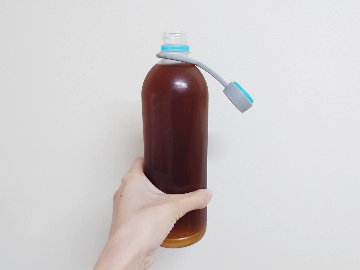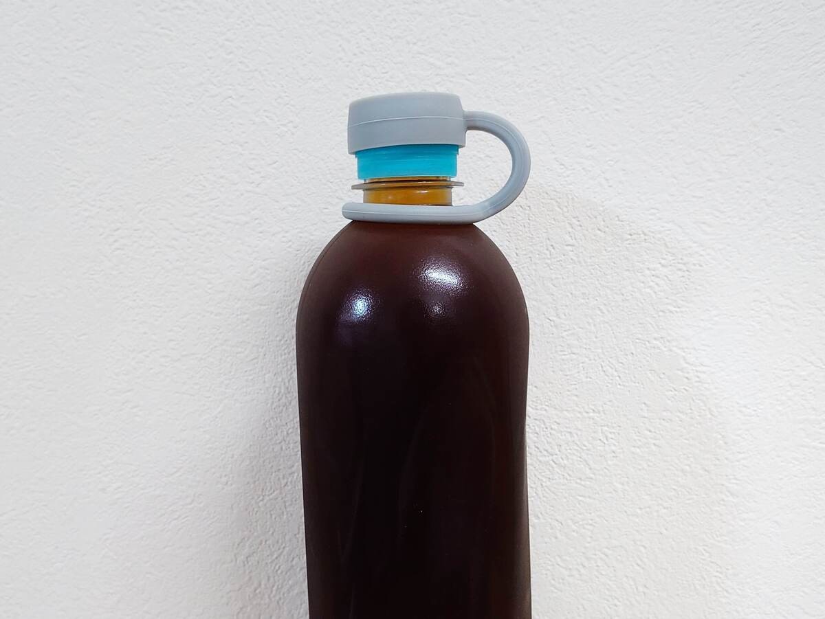 「ペットボトルキャップホルダー」は、ペットボトルに簡単に取り付けるだけで、キャップを落としません。