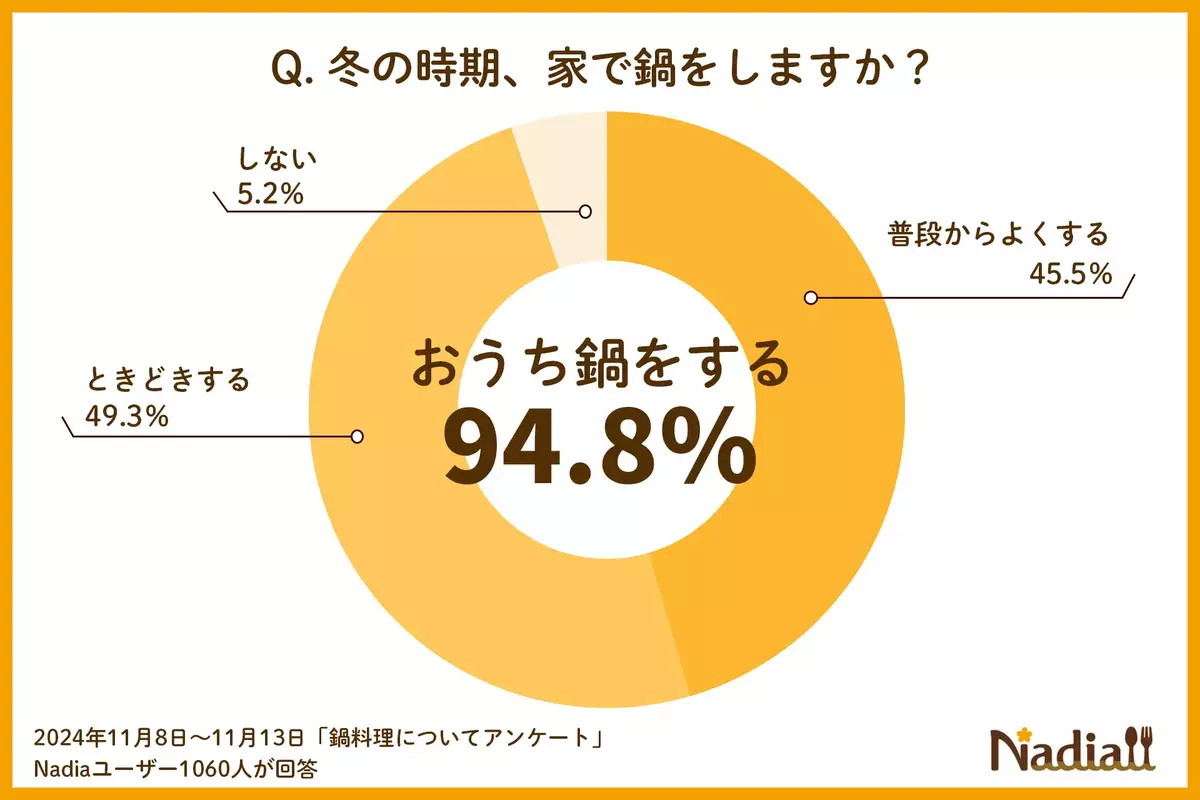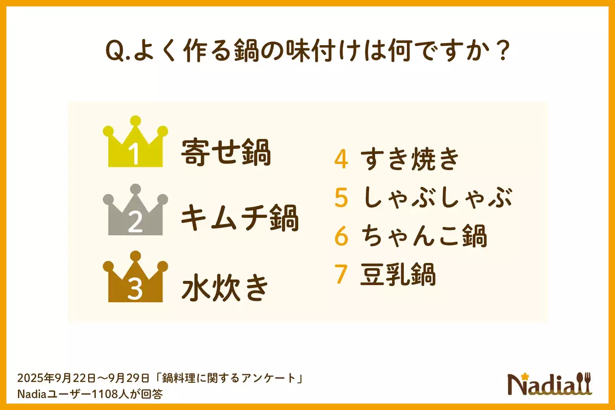 料理メディア「Nadia(ナディア)」から、「鍋料理」に関するユーザーアンケート(※1)が実施されました。