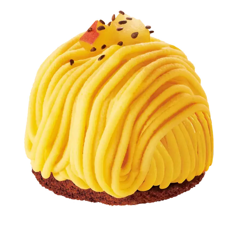 鳴門金時クリームの、まろやかな甘みのモンブラン。ココアスポンジの上には黒ごまホイップがかくれんぼ。