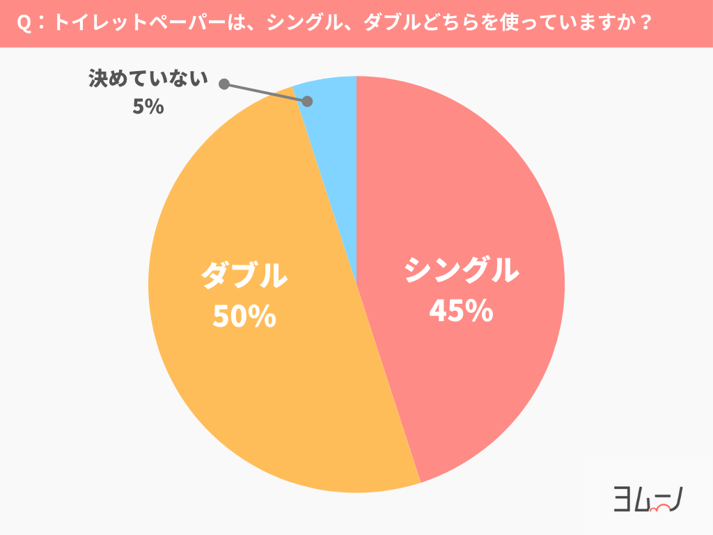 トイレットペーパーは「ダブル派」が50%と最も多く、僅差で「シングル派」が45%という結果に。