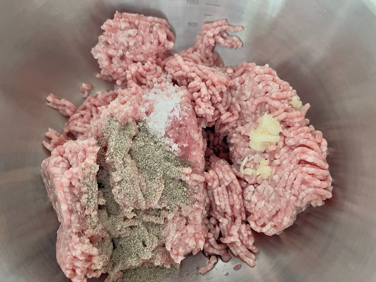 作り方①ひき肉の準備をし、1日寝かせる