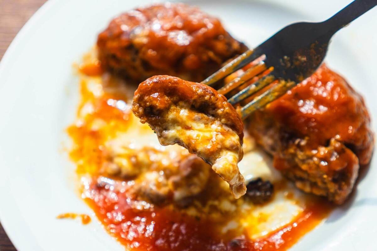 濃厚なトマトの酸味とチーズのコクが合わさって◎。そこに肉の旨味も加わって食べるごとに幸せ度がどんどん高まっていきます。
