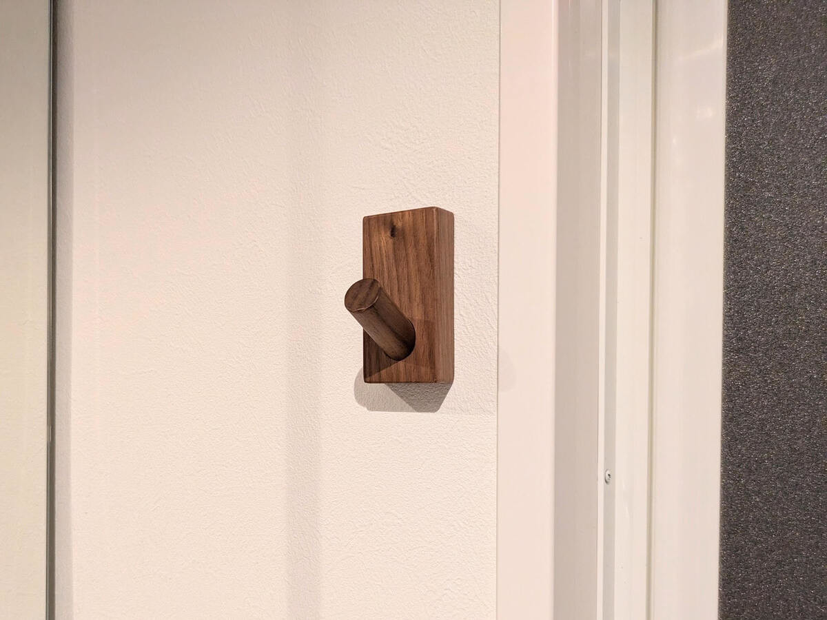 石膏ボードに簡単に取り付けられ、耐荷重は2kg。バッグや帽子などをサッと掛けられるフックです。引っかける部分が太めなのが特徴。