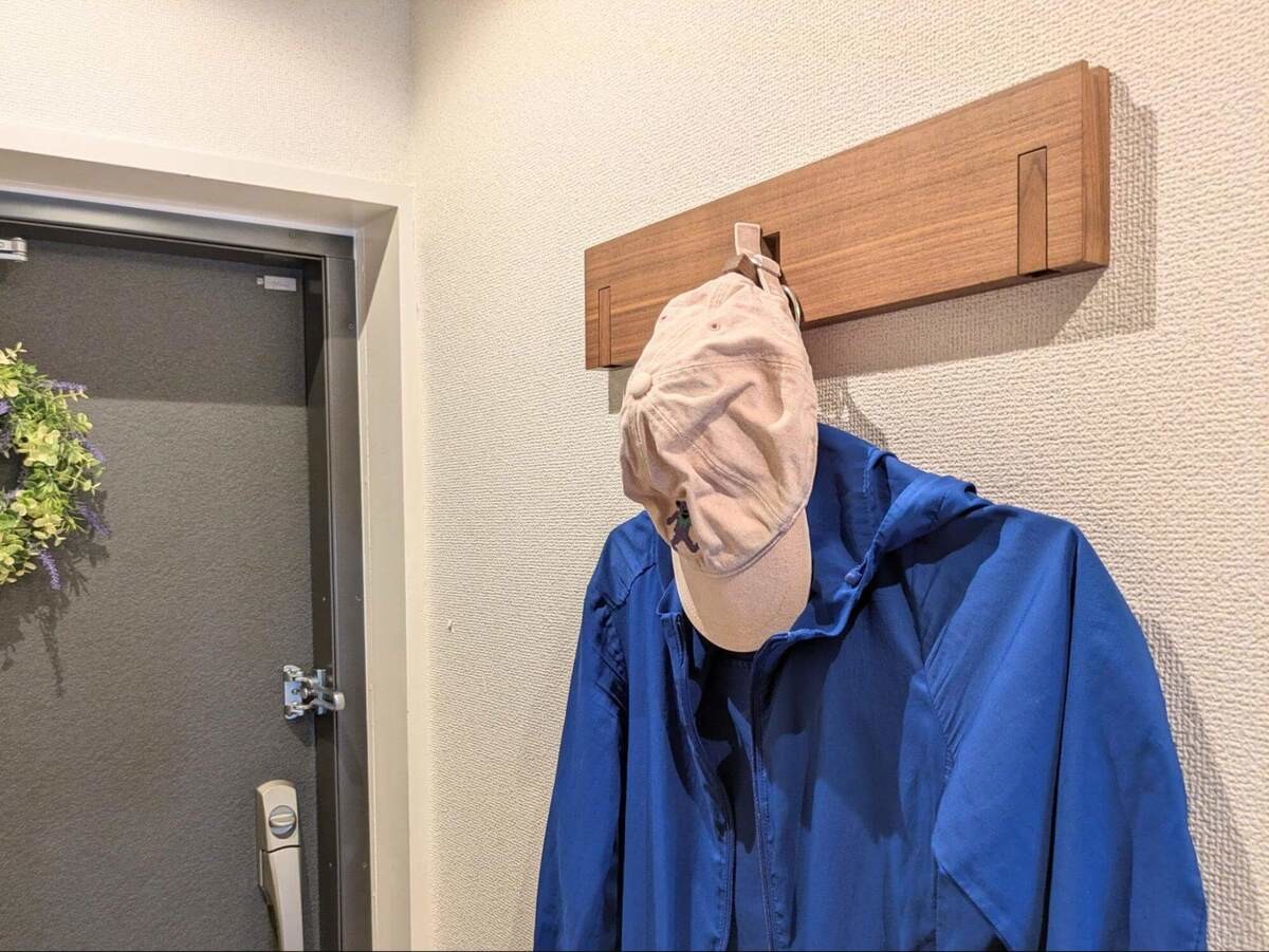 帽子や傘、レインコート、上着などリビングには持っていきたくないけど、直接床には置きたくないものを引っ掛けられて、出発前と帰宅後のバタバタが軽減しました。