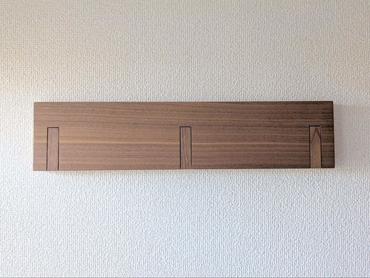フック部分が収納できちゃう「壁に付けられる家具 3連ハンガー」