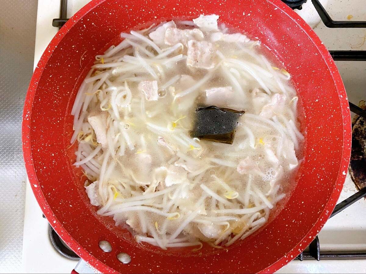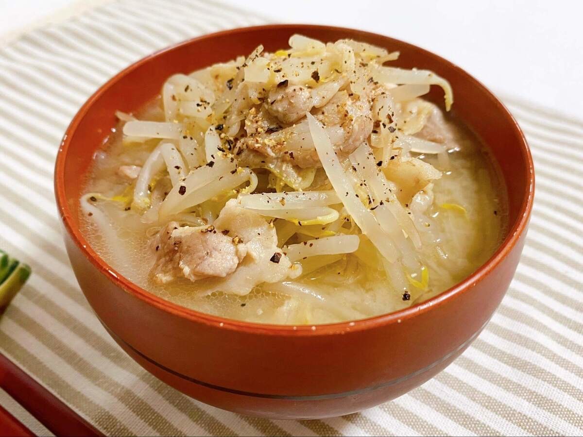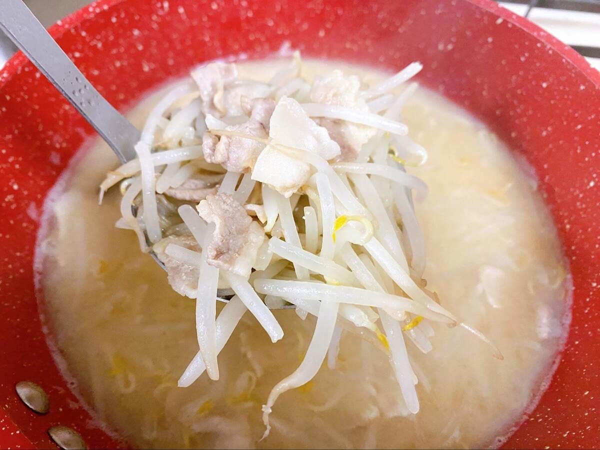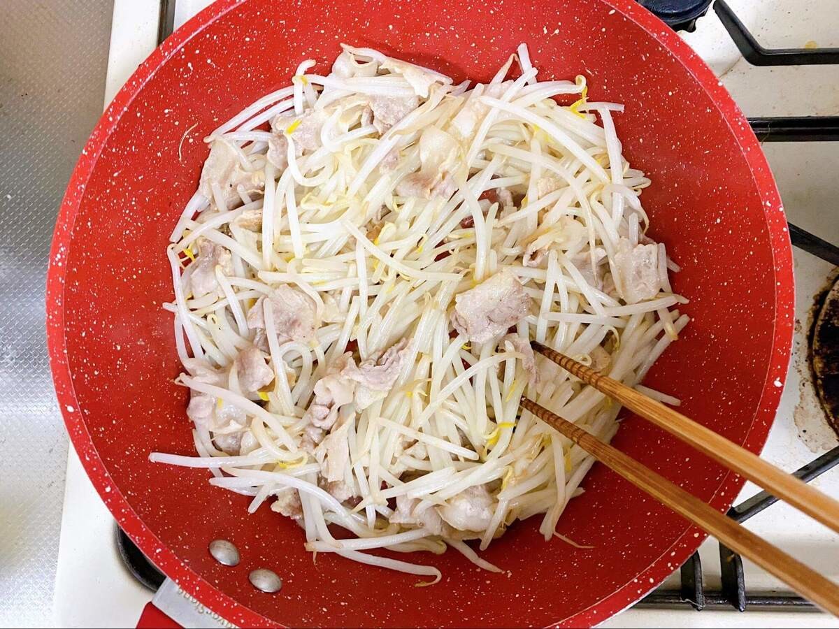 具だくさんなイメージを取っ払い、使う具材は豚肉とたっぷりのもやしだけ。