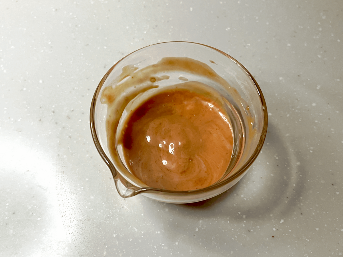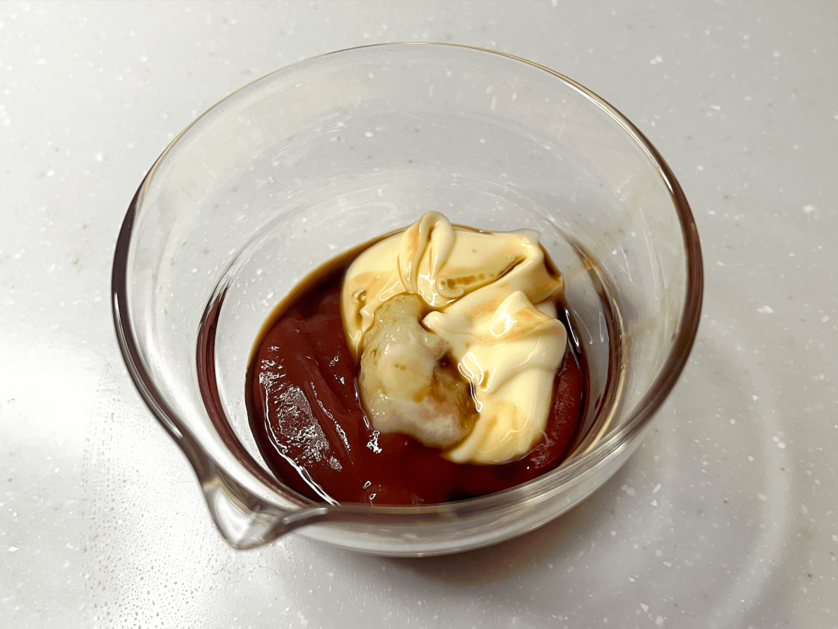 玉ねぎが落ちるのが嫌な方は、ソースに混ぜておくのもありです。