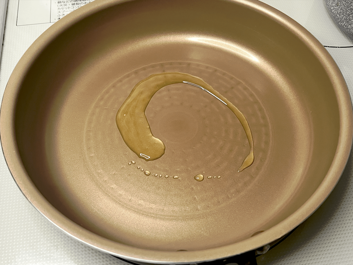 しょうゆは、小さい豆腐にかけるくらいのニュアンスで入れました。