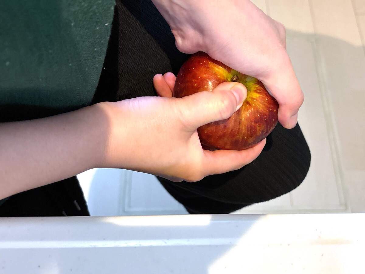 ぜひ美味しいりんごを用意して、「できるか、できないか?」チャレンジしてみてくださいね♪