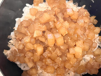 みそ大根はかなり濃い味がついているので、ごはんと一緒に食べるのがちょうどいい。そして、このくらいの大きさでも、まだ歯ざわりがしっかり残っています(大根の個体差にもよると思われますが)。