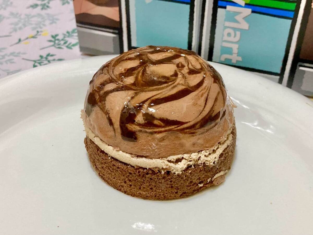真ん中にチョコガナッシュを絞った土台にはマーブル模様が特徴的なドーム型のチョコムースを乗っています。